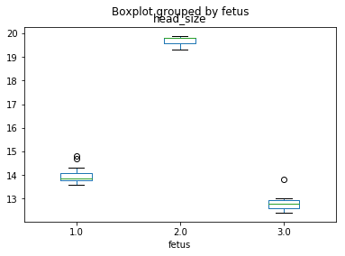 df.boxplot(column = 'head_size', by='fetus' , grid = False)